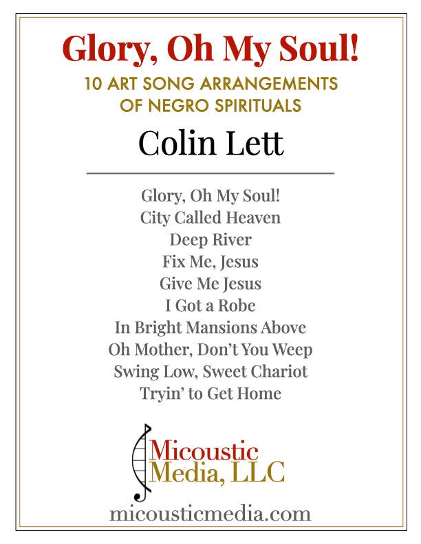 This collection of ten spirituals for solo voice and piano displays Colin Lett's deep love and understanding of the Negro spiritual. The piano accompaniments support the beautiful melodic vocal lines. Singers of varying stages of vocal development will enjoy rendering these wonderful settings.